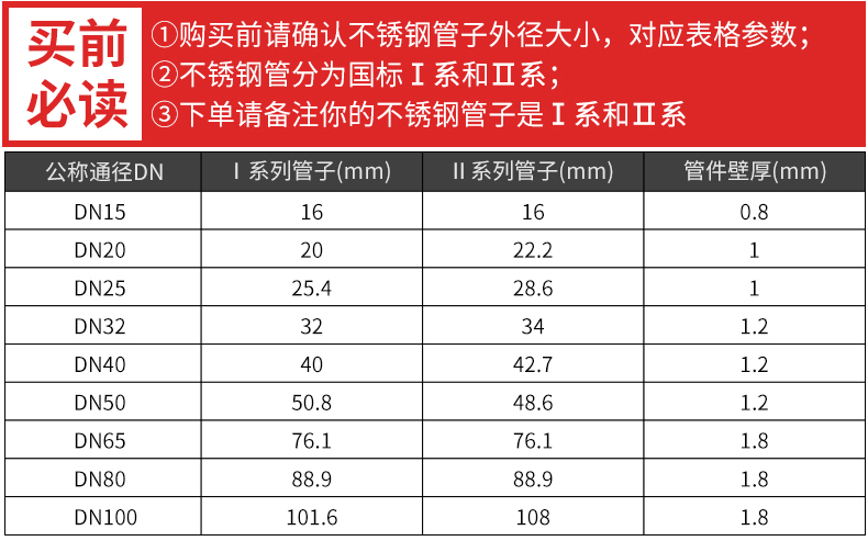 適用連接方式:卡壓連接          適用規格: DN15-DN100
